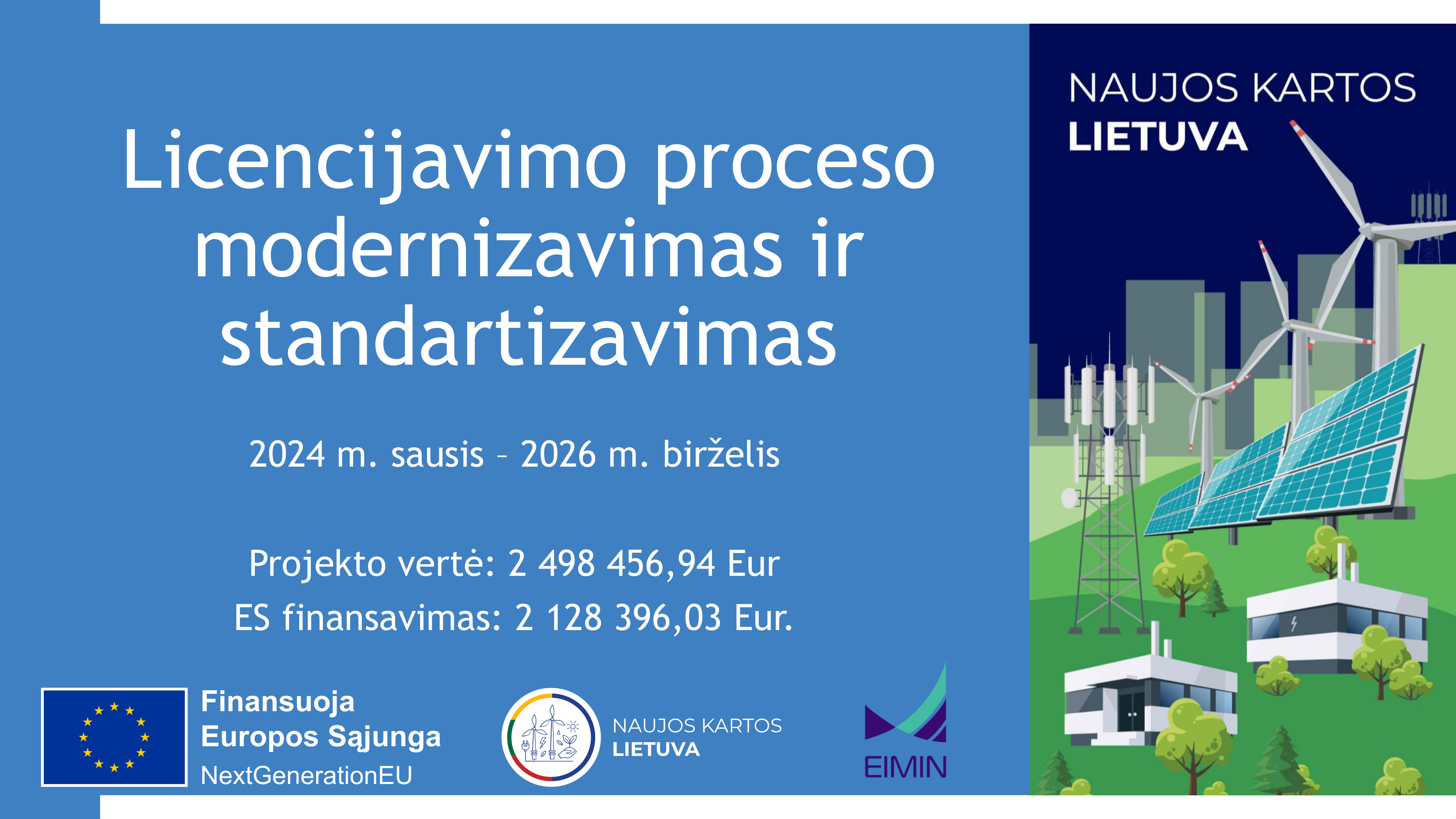 Ekonomikos ir inovacijų ministerija, kartu su viešąja įstaiga Statybos sektoriaus vystymo agentūra ir kitais 23 partneriais įgyvendina projektą, kurio apimtyje bus skaitmenizuotos 92 licencijų išdavimo paslaugos, patobulinti Paslaugų ir gaminių kontaktinio centro informacinės sistemos vedliai, suvienodinama licencijų paieškos ir išduotų licencijų peržiūros aplinka, sukurtas vieningas portalas, skirtas visai informacijai apie licencijas.